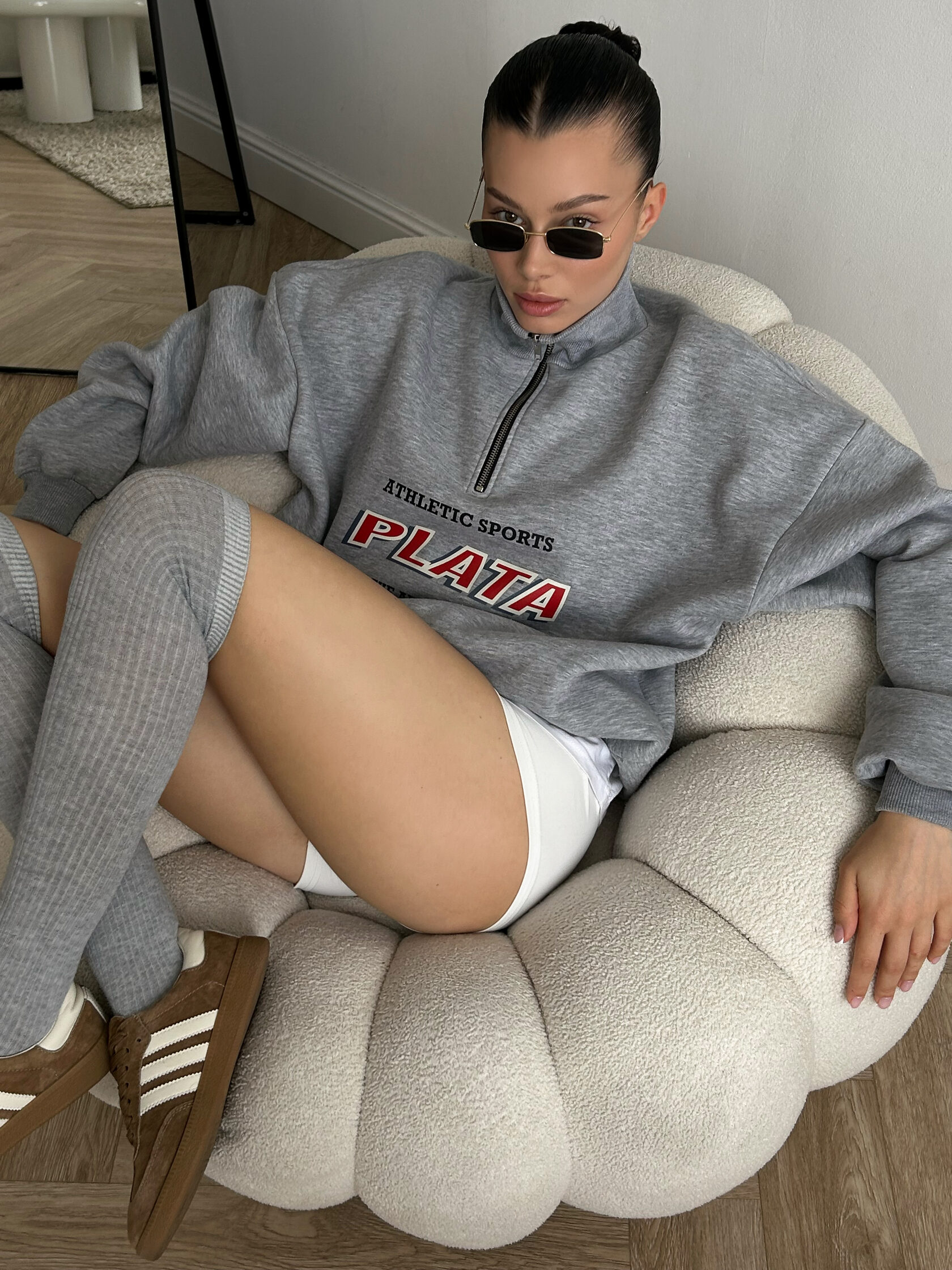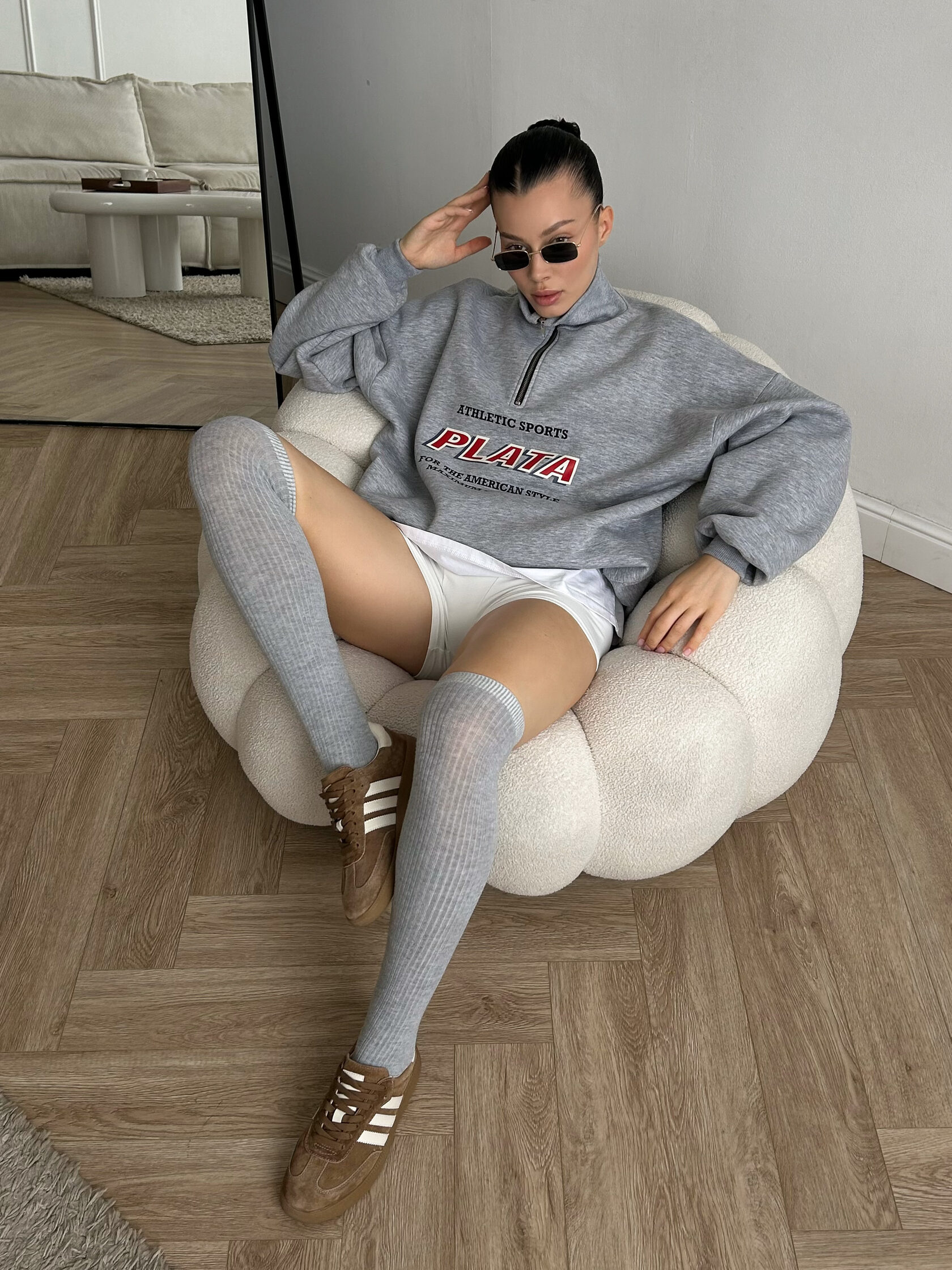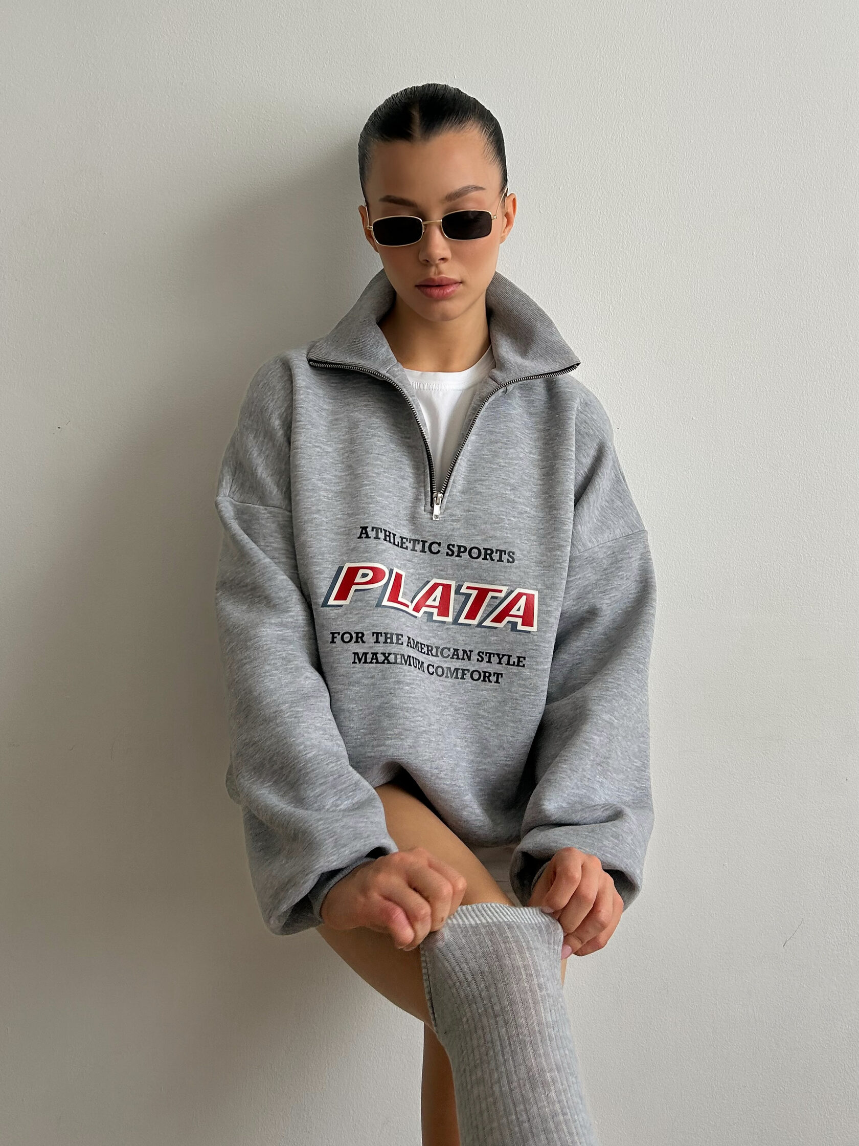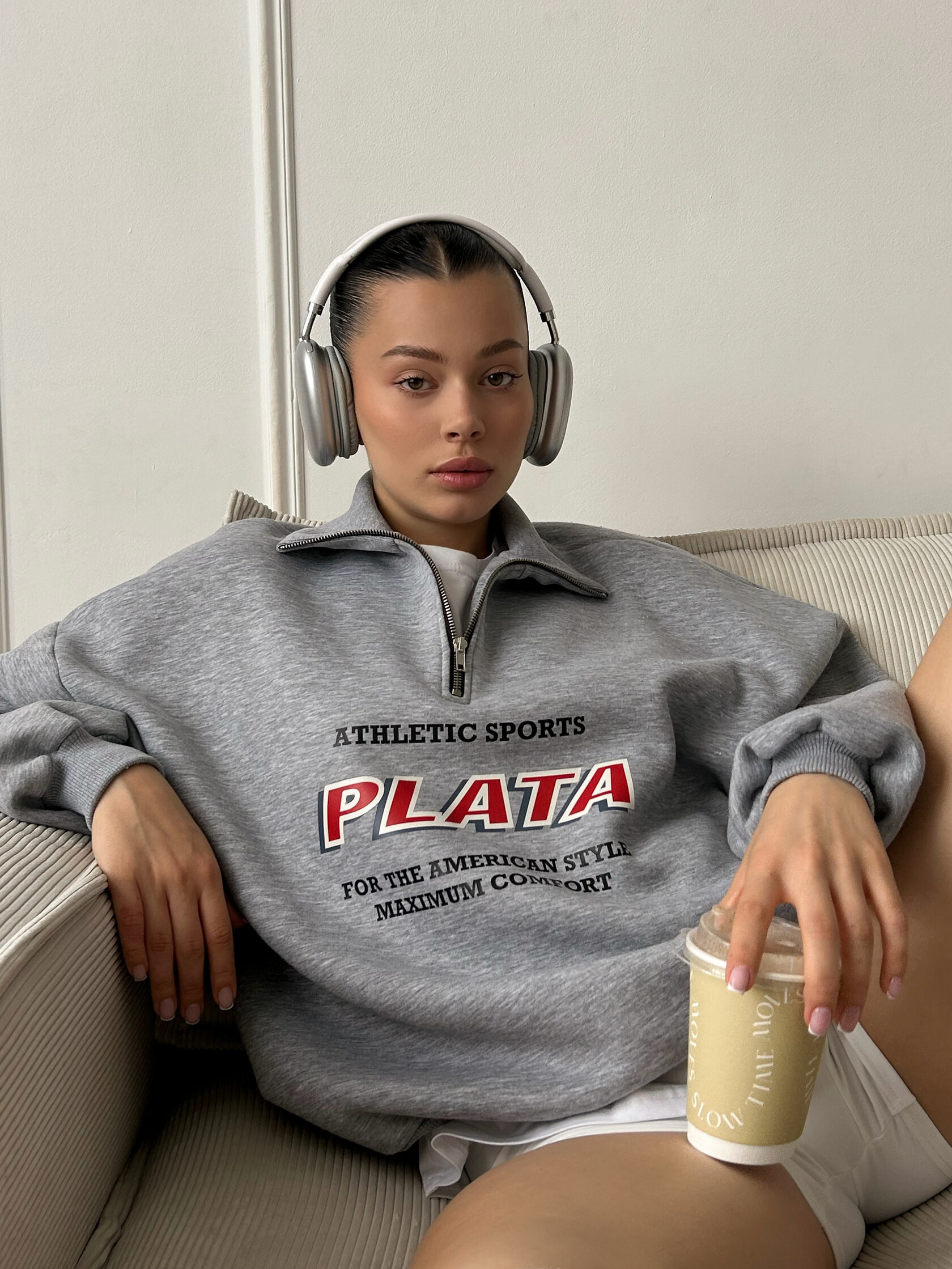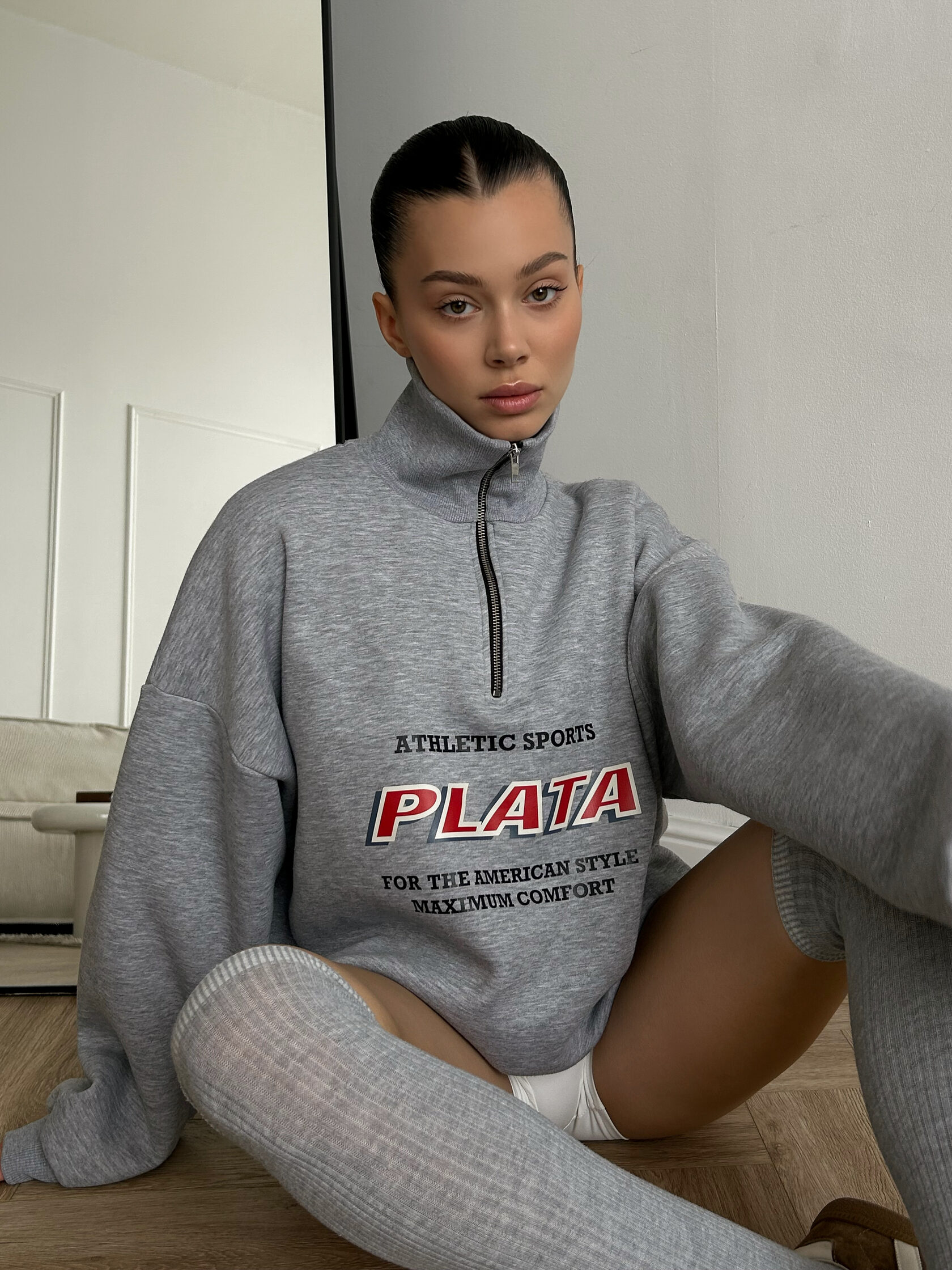 Свитшот с воротником стойкой. Выполнен из трикотажного 3х ниточного полотна "футер" с начёсом, качества "пенье компакт". Ворот оснащен застежкой молнией.